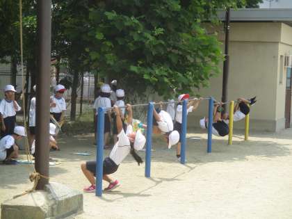 「てつぼうあそび」では,連続で技を続けることにも挑戦しています!