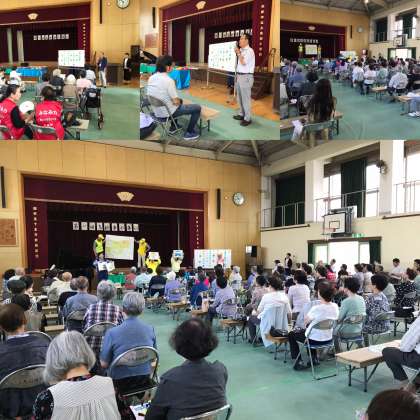 6月22日(土),第27回 上鳥羽学区高齢者の集いが,上鳥羽小学校体育館で催されました。真夏を思わせるような暑さの中,約100名の方々が参加されました。