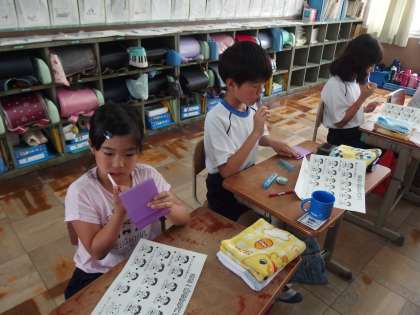 カラーテスターを使って,歯みがき指導をしました。
