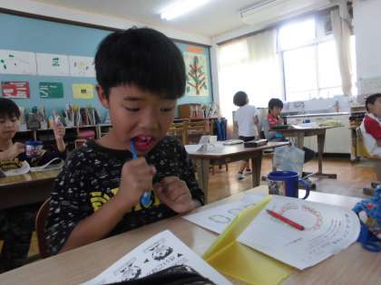 鏡を見ながら,歯の裏など見えずらいところも見ながら磨きました。