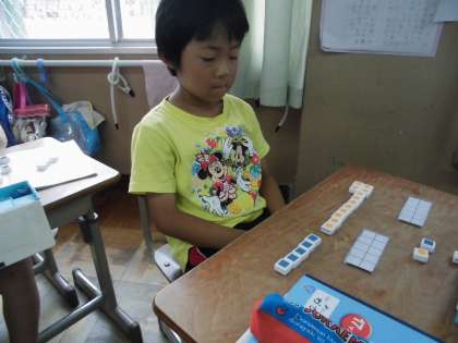 今日は,今まで使っていた図を見直す学習をしました。算数の合言葉は「はやく・かんたん・せいかくに。」(はかせ)です。今まで使っていた「まる図」では,数字が大きくなると「描くのに時間がかかるなあ。」「もっと簡単に描く方法はないかな。」という疑問から「テープ図」を描きました。「これなら何十の計算も図で表すことができるね。」「〇を描くより早い!」とテープの良い点に気付くことができる学習となりました。テープ図を描くときは,今まで使っていた数図ブロックをもとに考えました。
