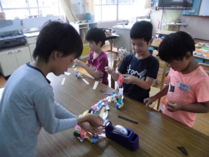 輪かざりもつくりました。長くつなげるのが面白いようです。