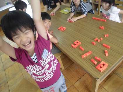 トランプの12→「Q」をつくっている子もいました。数字に加えて「−」,「=」もつくって式を完成させている子もいました。