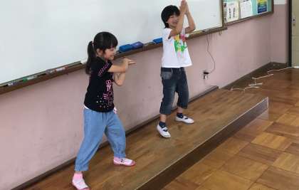 赤木先生がお休みや出張のときは,ミニ先生が「くちのたいそう」をしてくれます。今日はこちらの2人にお願いしました。とっても上手なミニ先生でした。