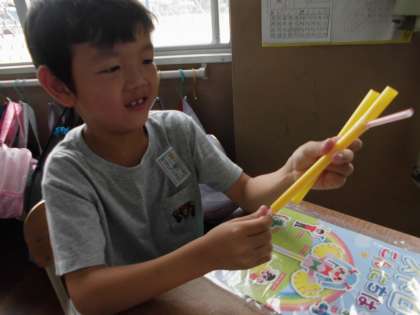 ストローの仕組みを作って動かすととても楽しいね!2つ作って組み合わせてみよう!うまく動かないときはどうしたらいいのかな。