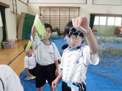 頑張って作った飾りも風で揺れるかな。楽しみだね。