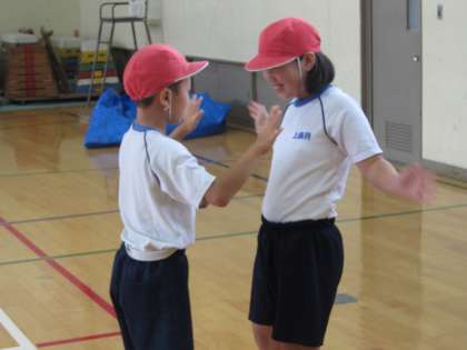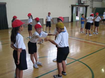 手押しずもうや片足ずもうなど,さまざまな「すもうあそび」を楽しんでいます。