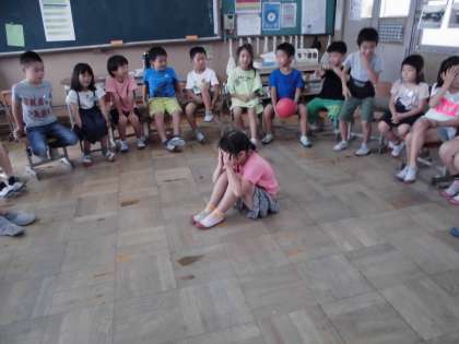 次は「ばくだんゲーム」です。「どかん。」と言われる前にボールをどんどん隣へ回します。