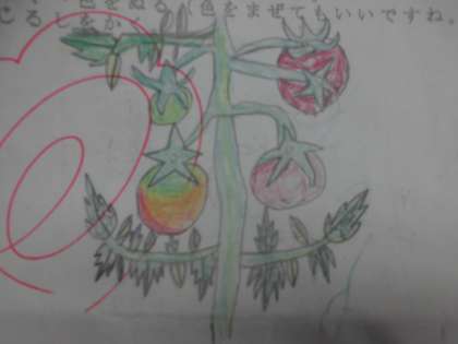 5月からとても大切に育てたトマトです。夏休み中でもおいしそうな実をつけてくれたみたいです。少しずつ枯れていく様子を観察している子もいました。