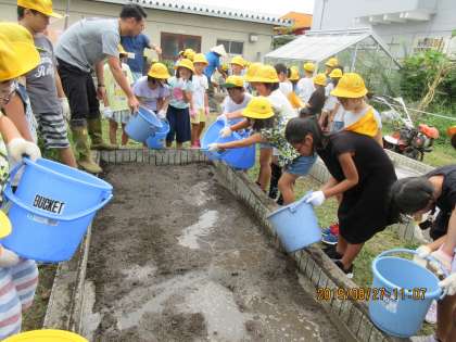 土が土づくりをおこなったあと,子どもたちに感想を尋ねると「想像以上に大変だった」という声が多くあがりました。このような入念な準備を通じて,京野菜が作られていくということを,子どもたちは活動を通して実感していました。