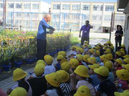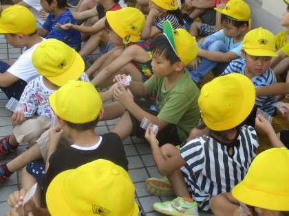 地域の方にお世話になり,聖護院大根の種まきをしました。一人種5つぶを,ペットボトルでつくった5つの穴にまいていきます。「大きなかぶみたいになるかな。」「こんなに小さい種からできるの!?」「早く大きくなってほしいな。」など,わくわくした気持ちが感じられる声が聞こえてきました。
