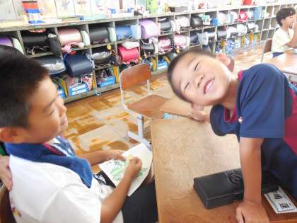 1組,2組合同でお話クイズをしました。