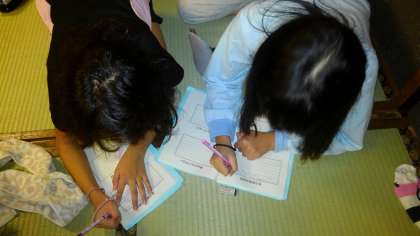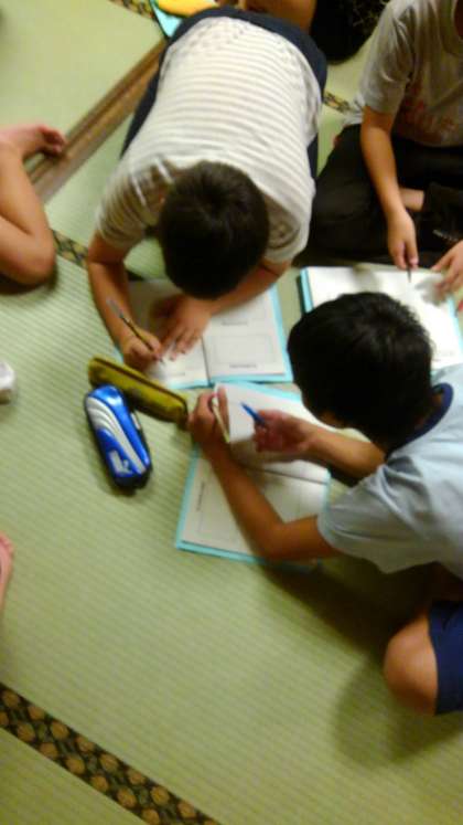 今日の活動で思い出に残っていることや仲間とのかかわりで新たに見つけたよいところなどをしおりに書きました。
