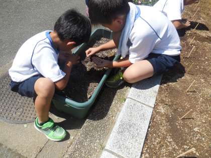 次は,間引きと言って芽が集中しているところを見つけて芽をぬく活動をすることを伝えました。「トマトといっしょでやさしくしてあげると育つかな。」