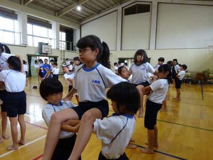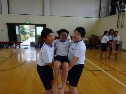 組体操の練習では,3人組・5人組が始まりました。