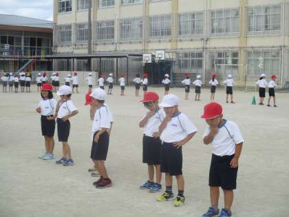 運動場練習が始まりました。場所を覚えながらおどるのは,難しいです!