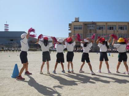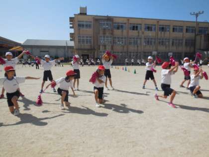 みんなで声を掛け合って一斉に隊形移動する場面もあります。