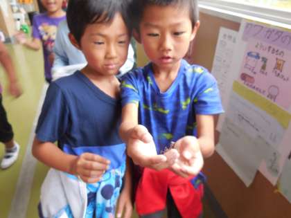 大事にしている生き物を「すごい♪」と言ってもらえてうれしい2年生です。