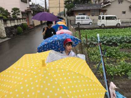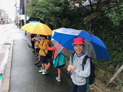 帰りは雨が降っていましたが,上手にまっすぐ歩くことができました。