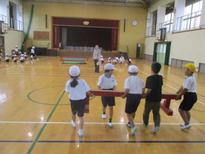 体育では,「へいきんだいあそび」が始まりました。グループで協力して準備をしてスタートをします。ゆっくり慎重に渡る子,たったったとリズムよく渡る子,落ちないように気を付けながら,それぞれに平均台を楽しんでいました!
