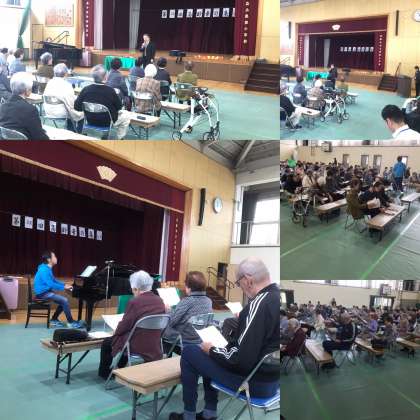 続いて「歌謡トークショー」が行われました。坂下先生の素敵なトークで,優しさや温かさが会場に広がりました。参加された方々は,「声を合わせて歌ったおかげで気分が爽快になった。」「これからも元気に過ごしたい。」など,口々に「楽しかった。」とおっしゃっていました。坂下先生,本当にありがとうございました。