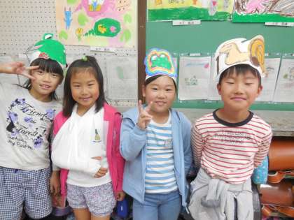 ナレーターの友達は,好きな登場人物やマイクの絵をお面にしています。一人一人の想いが表れていますね。