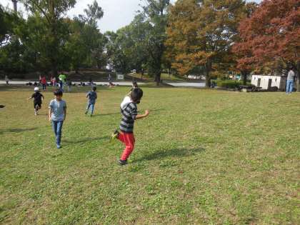 芝生では,思いきり遊びました。