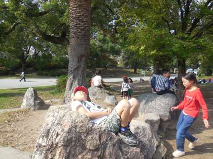 はないちもんめをしていました。岩の上でお昼寝も気持ちよさそうですね。