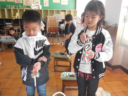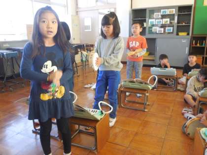 ♪畑に大きなかぼちゃができた♪歌のリズムに合わせて演奏します。