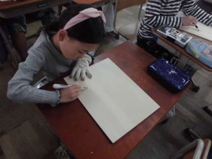 4年生 図工「ほってすって見つけて」