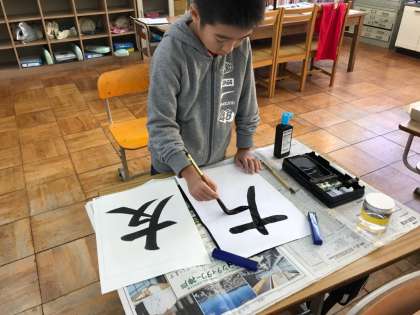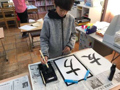 4年生以上の子どもたちは,習字で「友」を書きました。難しかったですが,自分たちが納得できる字を書くことができました。