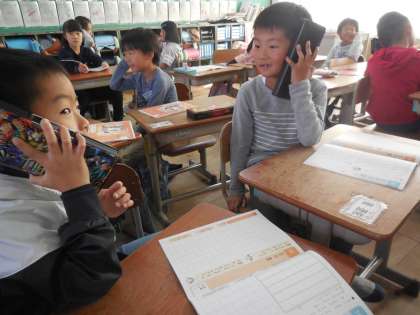 道徳では,上手に電話の対応ができた主人公の話をもとに,大人や目上の人への話し方について話し合いました。