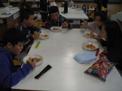 「おいしかった。」「味が少しうすかった。」「楽しかった。」「協力してできた。」感想の声です。