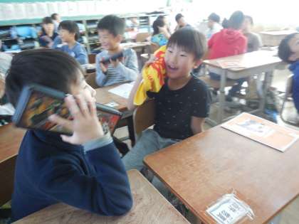 筆箱を電話に見立てて,友達と上手に話せるように工夫しました。上手に話すことが出来たペアはみんなの前で発表もしてくれました。