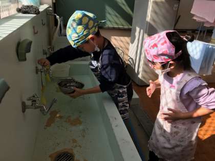 つかった調理器具は,しっかりと洗いました。