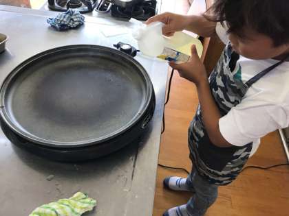 給食を食べている間に,焼くことになりました。油を入れて,ホットプレートで焼きました。