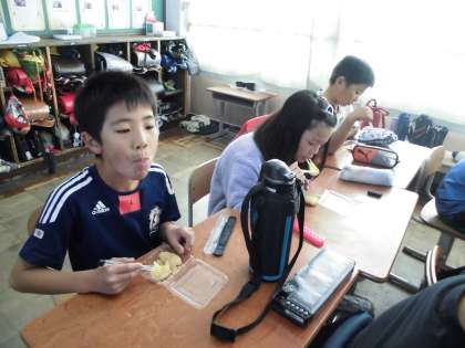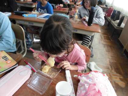 4年生 5年生が作ってくれたおもちを食べました