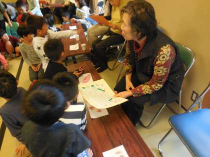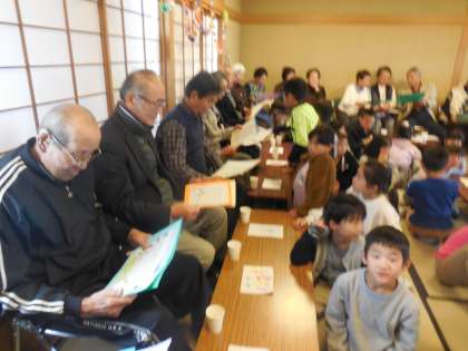 感謝状を渡し,最後にはみんなが得意な「ゆうやけこやけ」をきれいな声で歌いました。
