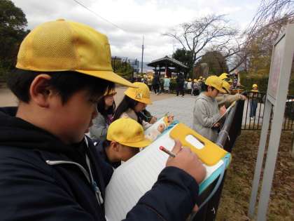 社会見学で琵琶湖疎水記念館周辺へ行きました。インクラインや北垣国道の銅像を見ながら,琵琶湖疎水の足跡をたどりました。「船を運んでいる!」「なんで道に線路があるの?」「この銅像は何をした人なんだろう?」子どもたちからはたくさんの疑問が出てきました。今後は,琵琶湖疏水記念館で調べたことをふまえながら,琵琶湖疏水についての学習を深めていきます。