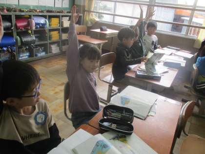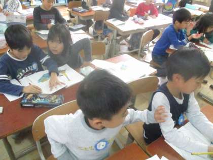 国語「じどう車くらべ」では,はたらく車のしごととつくりについて学習しました。説明文の書き方が分かると,どんどん本や本のコピーを使って,車の説明と絵をかき進めていました。学習が終わる時も,「もっとたくさん書きたい!」「図鑑をもっと作りたい!」と話す子が多かったです。