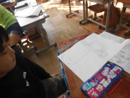 アメリカの友達がほしいから,日本語を英語に書き直してくれる鉛筆や,変身できるめがね,空を飛べるくつなど,子どもたちのアイデア満載の道具たち。
