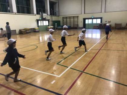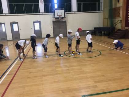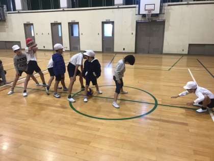 みんなの足のあいだにボールを通すチャレンジをしました。