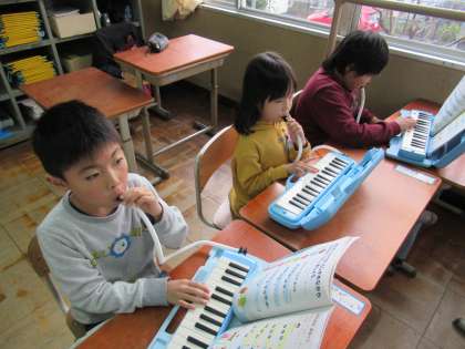 音楽では,けんばんハーモニカを久しぶりにふいたり,わらべうたを楽しんだりしました。