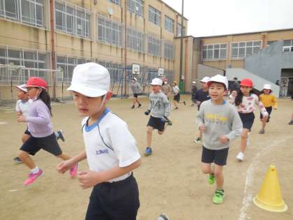 自分との挑戦です。持久走はしんどくなります。それでもあきらめず頑張る2年生。
