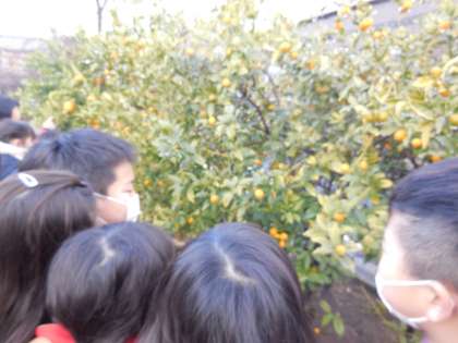 「ちょっといい匂いがする。」「みかんの匂いだな。」いよかんやゆずもとても大きな実をつけています。