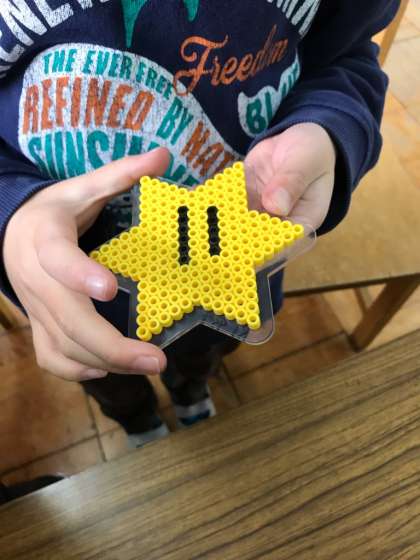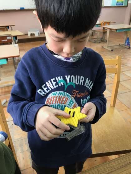 アイロンビーズをしました。好きな色を探して,自由に作品をつくりました。