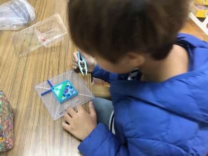今日は,1日雨が降っていたので外で遊ぶことができませんでした。中間休みには,教室でアイロンビーズやお店やさんごっこをして楽しく過ごしました。