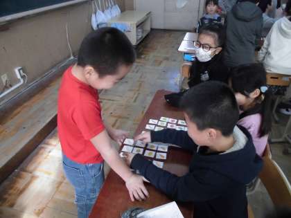 「What do you want?」の学習で,野菜カードを使ってお店屋さんをしました。