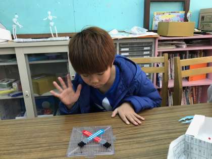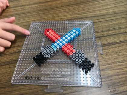 アイロンビーズ遊びを通して,素敵な作品ができています。