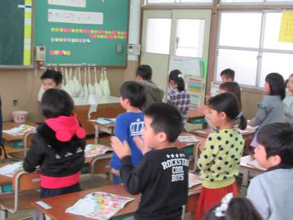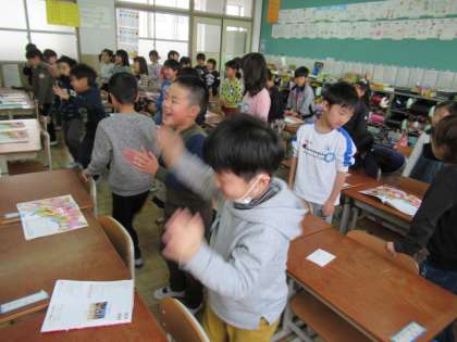 「ラデッキー行進曲」を手拍子や足踏みをしながらききました。曲の変化を楽しんで,体で表現している子もいました。
